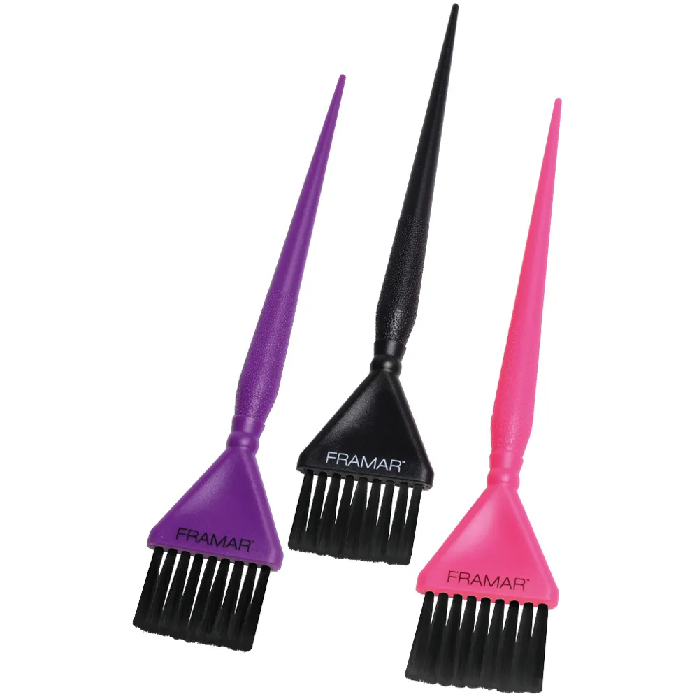 Das Framar Farbpinselset Triple Threat (3 Stück) ist die perfekte Wahl für professionelle Colorationen im Salon. Die drei unterschiedlich gestalteten Pinsel sind vielseitig einsetzbar und eignen sich für nahezu alle Farbtechniken – von klassischen Anwendungen bis hin zu kreativen Looks.