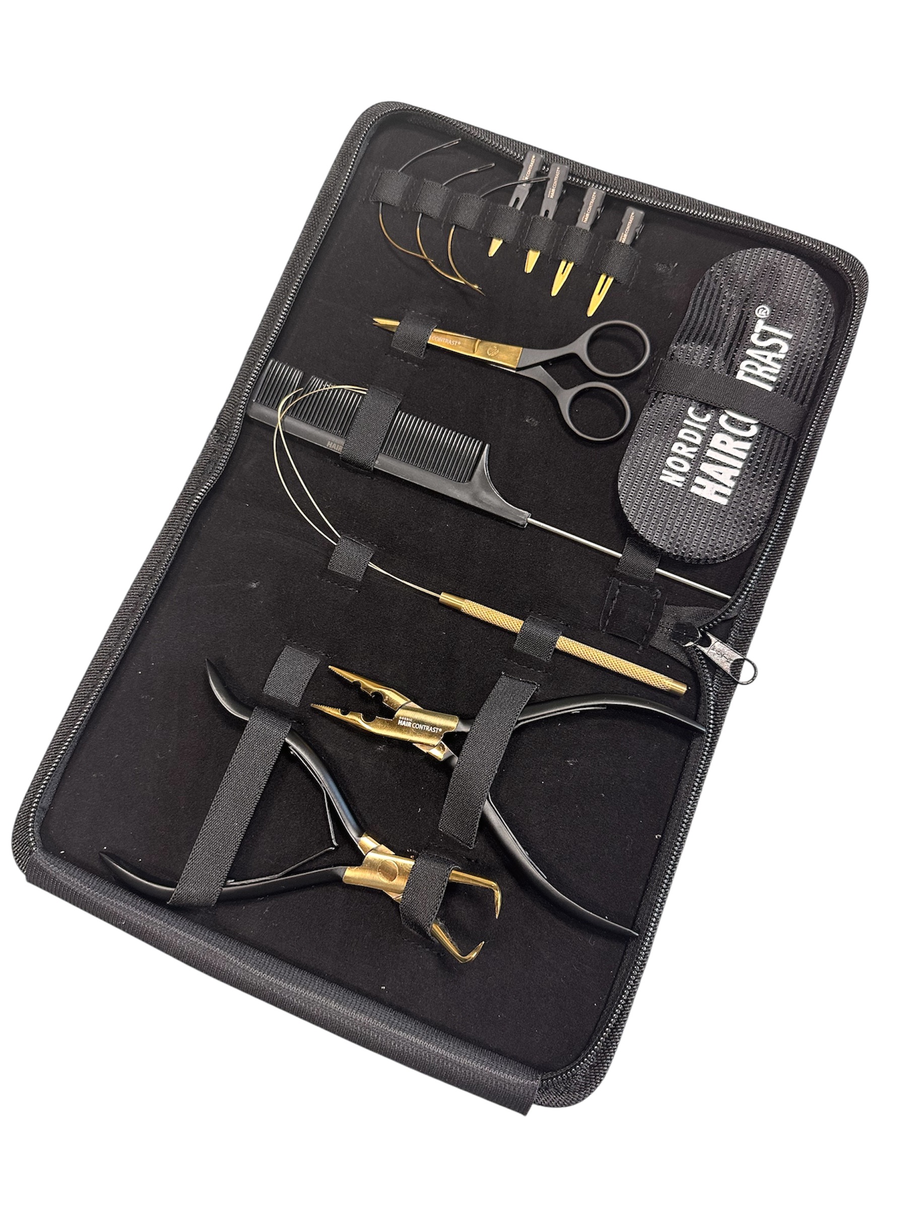 Alle Werkzeuge in einer praktischen Aufbewahrungstasche – perfekt für die mobile Anwendung oder den Salonalltag.