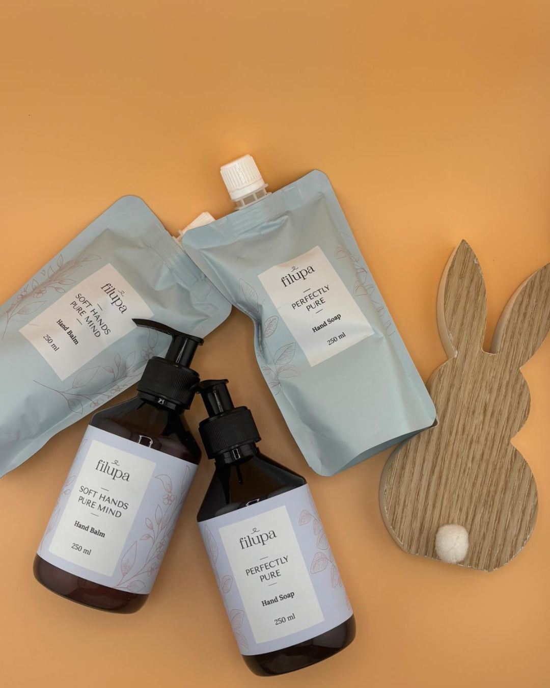 Mit dem Filupa Oster Paket erhältst du ein liebevoll zusammengestelltes Set für die tägliche Handpflege. Die Kombination aus Filupa Hand Soap, Hand Balm und den praktischen Refill-Packungen reinigt deine Hände sanft, versorgt sie intensiv mit Feuchtigkeit und sorgt für ein gepflegtes Hautgefühl – jeden Tag.